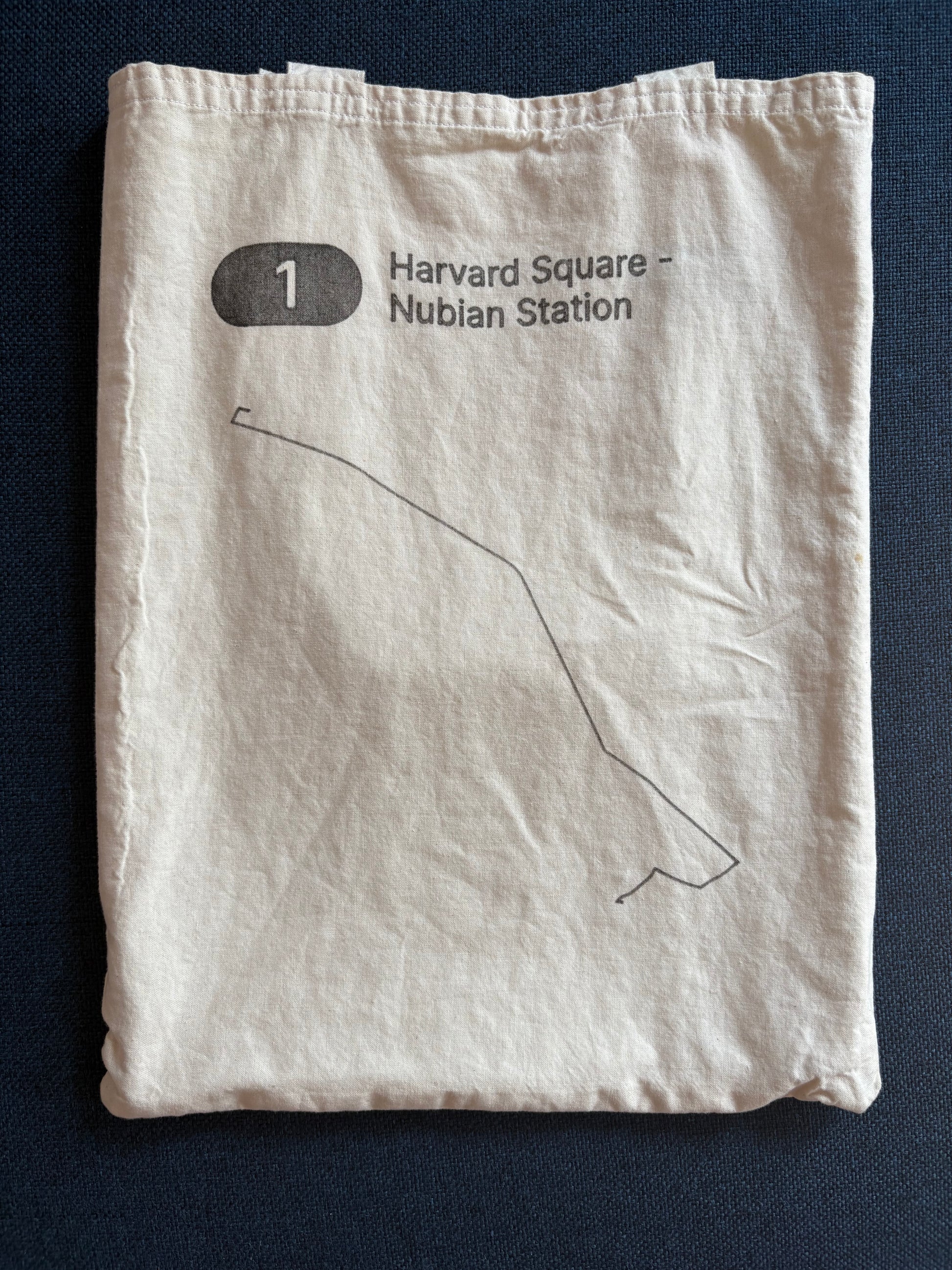 Tote bag showing the MBTA bus route of your choice.